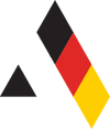Graphic design featuring the German flag colors, an abstract background with colorful splashes and swirls, and the words 'Alemana Online' with a Wi-Fi symbol in a circular stamp.